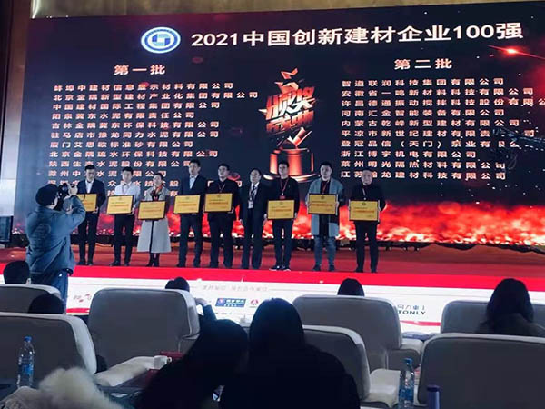2020年11月6日,公司董事長臧明光先生受邀赴合肥參加中國建筑材料企業(yè)管理協會舉辦的中國建材企業(yè)發(fā)展論壇,暨中國建材企業(yè)500強系列活動發(fā)布會。我公司被評選為''2020中國建材服務業(yè)100強''之一。感謝協會對我們的支持和青睞,我公司會繼續(xù)努力,創(chuàng)造更好的成績。
